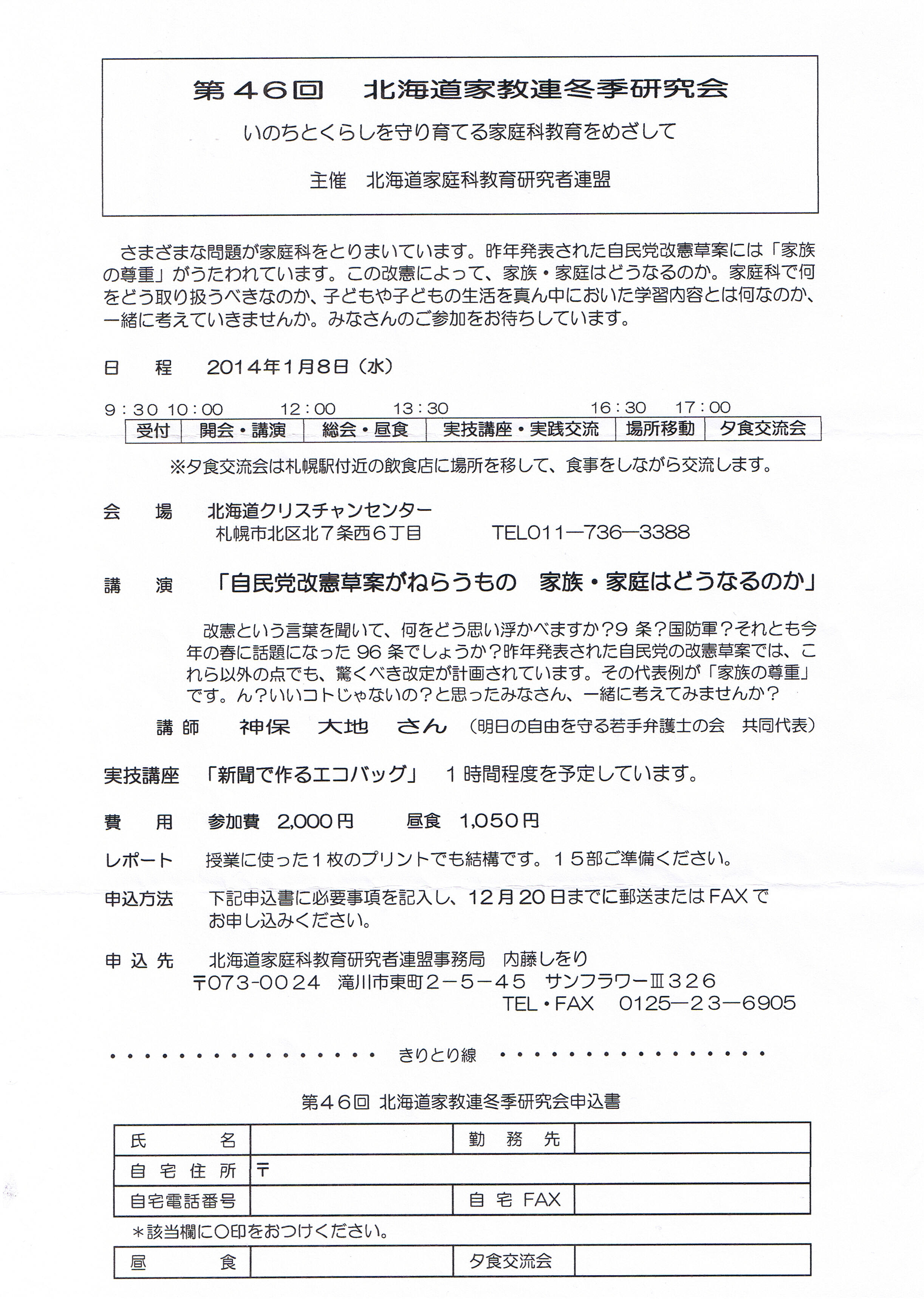 第46回北海道家教連冬季研究会のお知らせです。